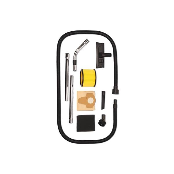 The scope of delivery also includes a foam filter for wet vacuuming, as well as a pleated filter and paper dirt bag for dry vacuuming.