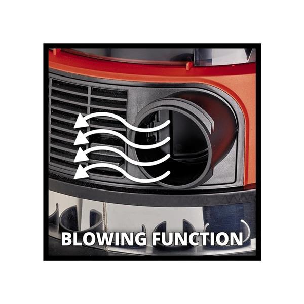 Equipped with a combi-nozzle for carpets and smooth floors, an upholstery nozzle for car seats and other upholstered furniture, as well as a crevice nozzle for hard-to-reach corners, the vacuum takes on any hurdle and is used for vacuuming, drying and cleaning work in the house, workshop or garage. Tight niches can be blown out quickly with the blow function to then suck up the dirt.