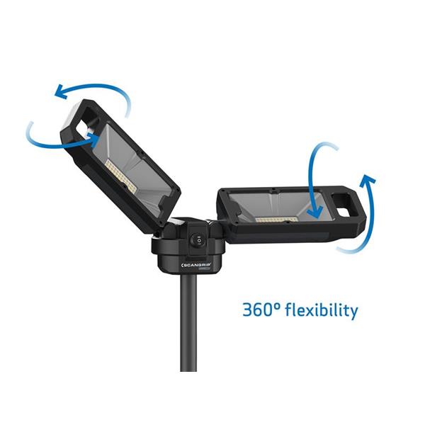 The SCANGRIP® TOWER 5 CONNECT has two 360° flexible and rotatable floodlights, the lights can be positioned in many different positions to obtain the desired lighting angle, providing perfect lighting condition for painting and installation work. It is extendable up to 2 meters and features a two level light output (50-100%) which makes it possible to adjust the light according to the work task.