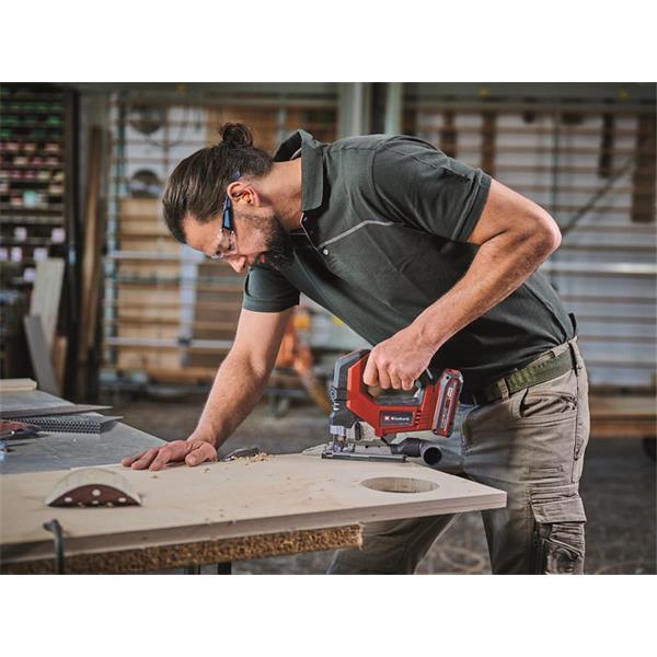 The Einhell TP-JS 18/135 Li BL-Solo Power X-Change Jigsaw is the perfect tool for ambitious DIYers who need the perfect cut in a whole host of different materials. Powered by the Einhell PurePOWER brushless motor. This brushless motor offers more power and a longer running time than conventional carbon brush motors. After registering online, the brushless motor comes with a 10-year warranty. The integrated soft start ensures high safety and protects the motor, and the stable aluminium base plate dampens the vibrations of the saw.