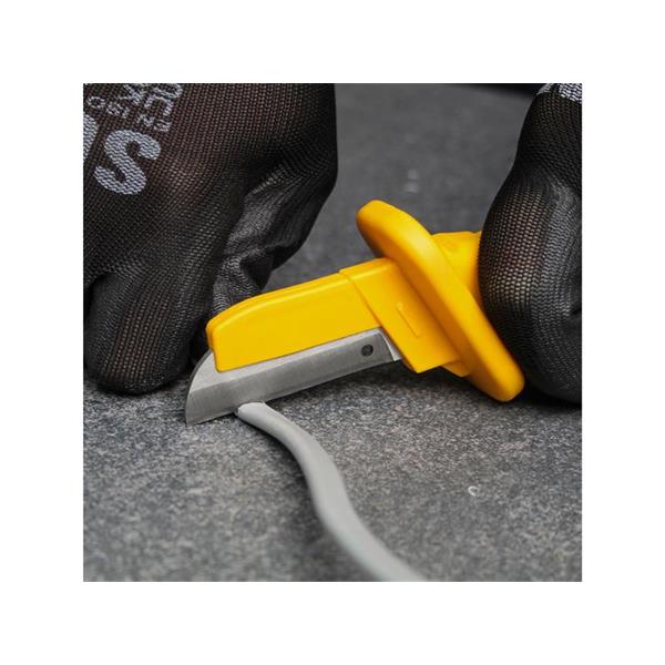 The blade is made from high-quality 60 CRV steel, which provides exceptional sharpness and durability, making it perfect for cutting through tough cable materials. Fitted with a bi-coloured, injected moulded ergonomic handle. Made from insulated PP & TPR, offering a comfortable, non-slip grip that reduces hand fatigue during prolonged use.