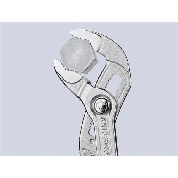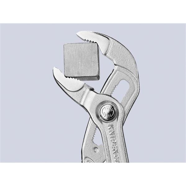 The Knipex 87 26 Series VDE Cobra® Water Pump Pliers are fitted with multi-component grips, VDE tested up to 10,000V and safe for work up to 1,000V. They conform to DIN EN / IEC 60900. They are adjusted by shifting one jaw directly on to the workpiece and can then be opened at the touch of a button off the workpiece. They have a fine adjustment for optimum adaptation to different sizes of workpieces and a comfortable handle width.