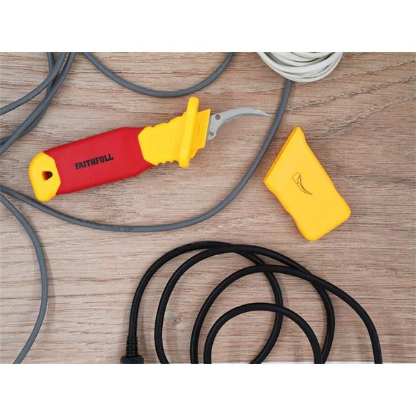 Faithfull VDE Stripping Knife is a specialised tool designed for precision and safety in electrical work. This knife is perfect for stripping insulation from cables and wires, ensuring clean and accurate cuts every time. The curved shape of the sickle blade helps give a clean and controlled cut around the insulation without damaging the wires on the inside.