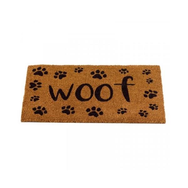 Add a fun and welcoming touch to your entrance with this “Woof” coir doormat, perfect for dog lovers. Designed to keep your home clean, the durable natural coir surface effectively removes mud and dirt from shoes and paws.